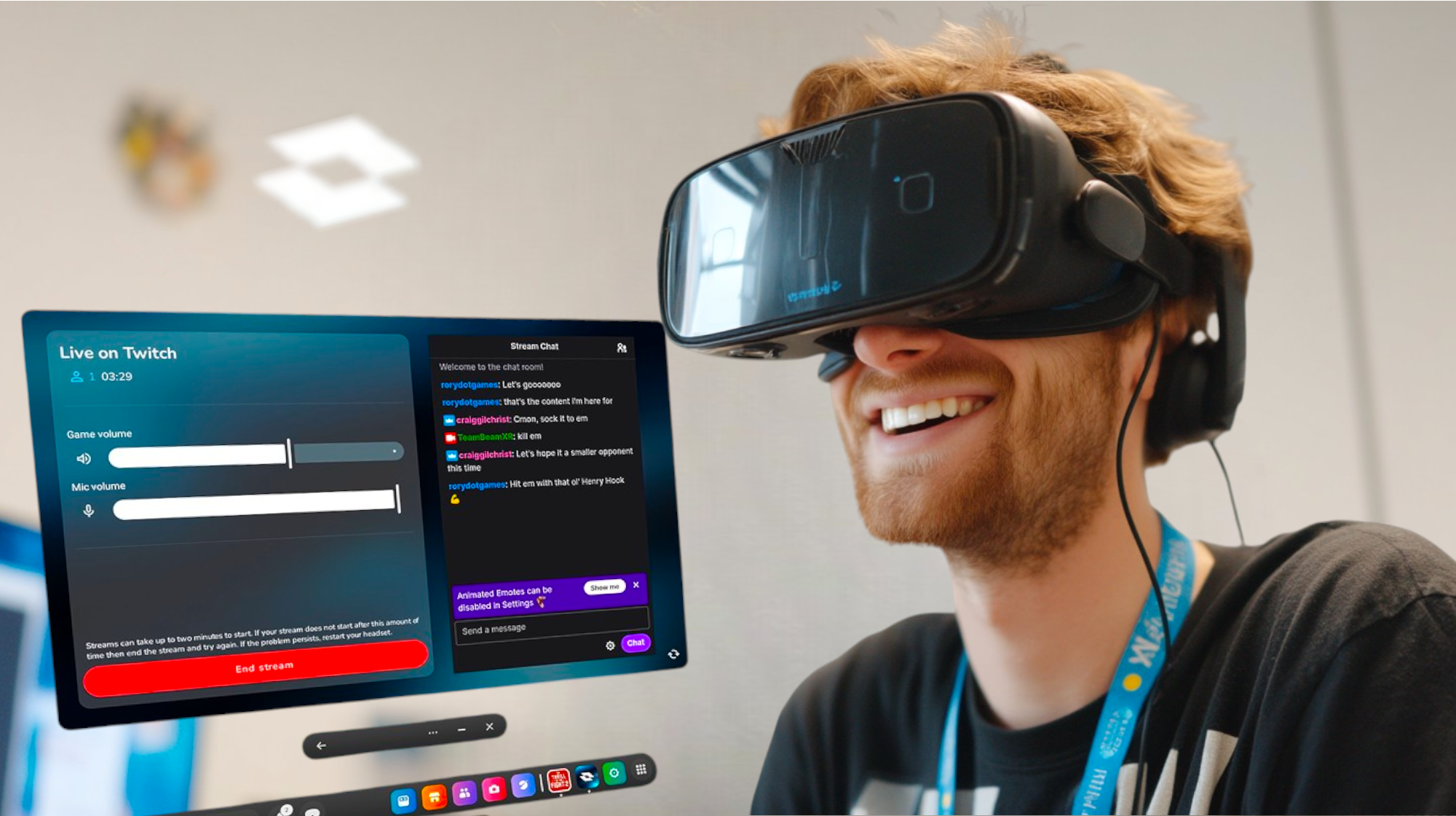 Mais non, ce n’est pas tout ce que BeamXR Live peut faire ! L’outil affiche également le chat en direct de chaque plateforme de streaming dans le champ de vision de l’utilisateur.